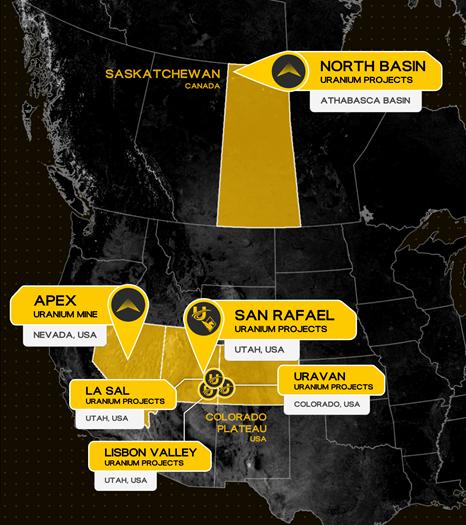 Urano's portfolio consolidates significant historical uranium resources and production legacy, positioning the company to capitalize on surging U.S. domestic demand for uranium as a critical mineral amid the American nuclear renaissance. Key highlights include: